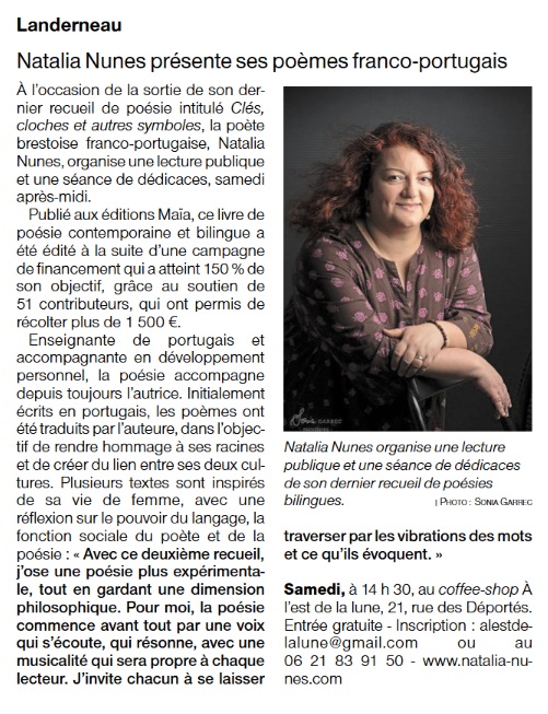 Natalia Nunes, poète franco-portugaise installée à Brest, publie "Clés, cloches et autres symboles", un recueil de poésie bilingue